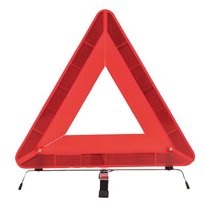 Zodra de situatie veilig is, is het zaak om direct duidelijk te maken dat je stilstaat met pech: dus: alarmlichten aan, veiligheidshesje aan en de gevarendriehoek op voldoende afstand plaatsen..