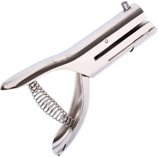 De gaatjestang maakt een gaatje van een doorsnede van 3 of 6 mm en is gemaakt van staal.