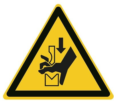 Het handverbrijzeling tussen buigbank waarschuwingspictogram  is gemaakt volgens de veiligheidsnorm ISO 7010. Met dit handverbrijzeling tussen buigbank  pictogram waarschuw je de bezoekers en het personeel voor eventuele risico’s die kunnen ontstaan.