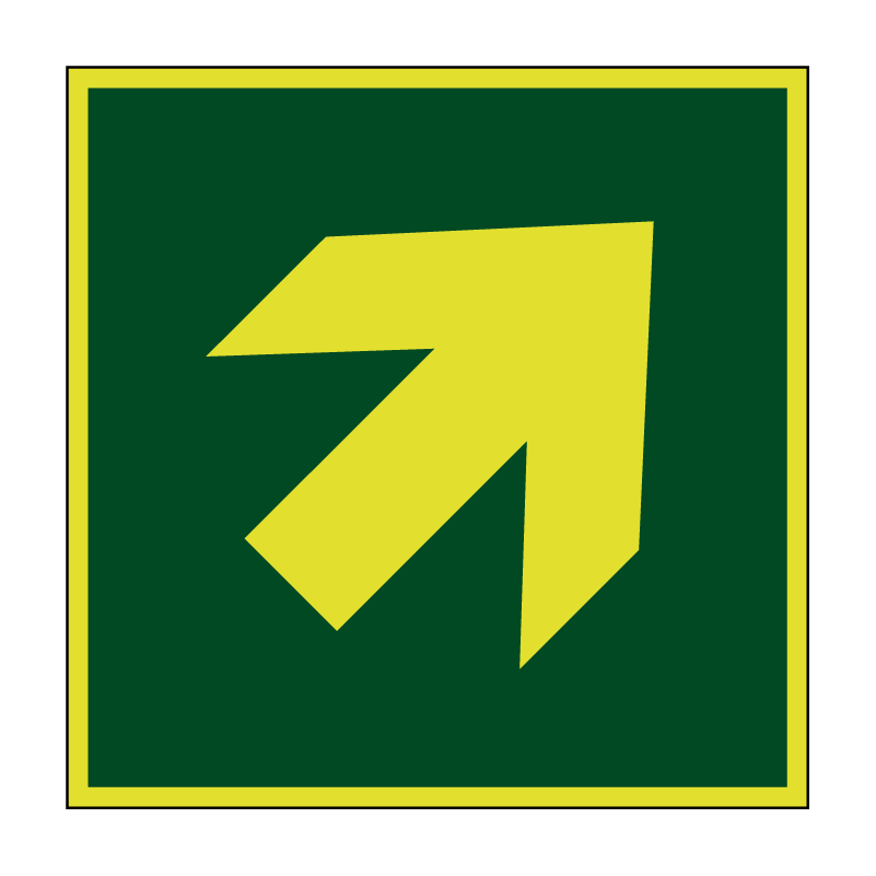 Het Richtingaanwijzing schuin lichtgevend pictogram is gemaakt volgens de veiligheidsnorm ISO 7010. Evacuatie pictogrammen zijn niet weg te denken in ruimtes waar evacuatie middelen zijn. Deze evacuatie pictogrammen zijn te herkennen aan een groene achtergrond met een witte pictogram.