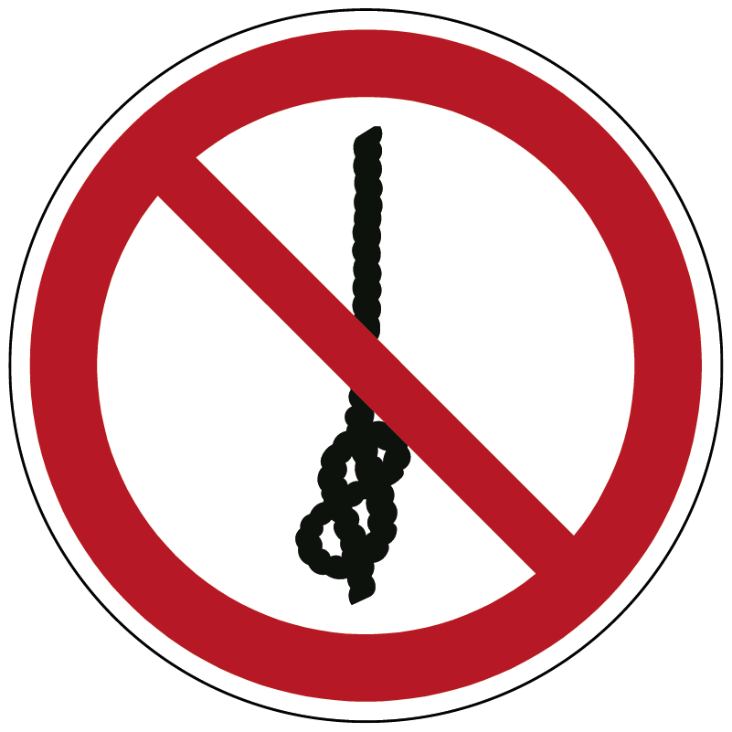 Het verboden om knopen te maken pictogram is gemaakt volgens de veiligheidsnorm ISO 7010. Met dit pictogram geef je aan dat het verboden is om knopen te maken.